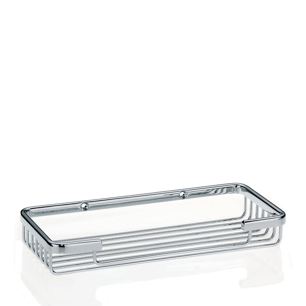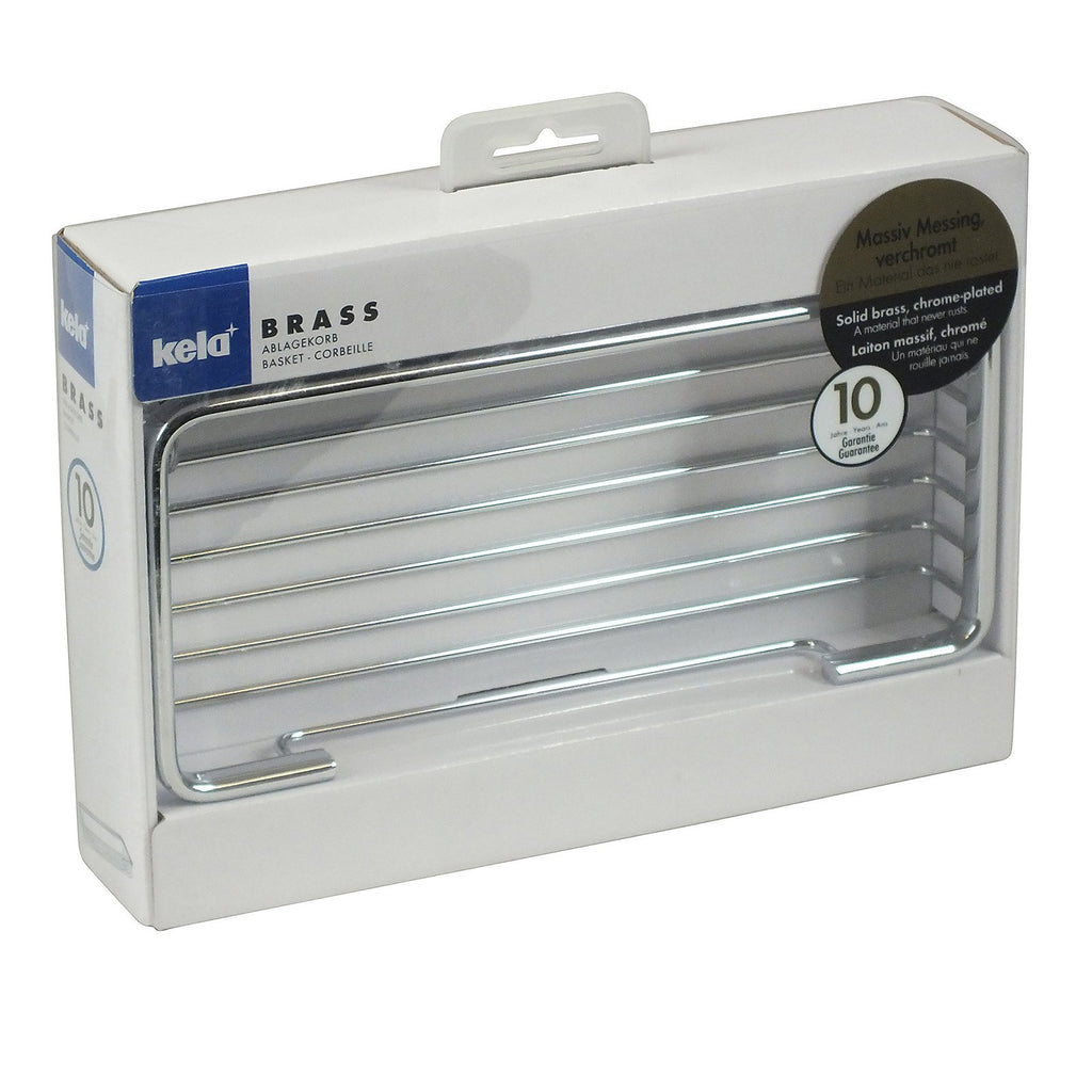 Kela wall-mounted shower baskets — open front for easy access; various sizes and shapes; sturdy screw fixation with hardware and instructions included; non-adjustable. German family brand since 1903: modern, durable quality.