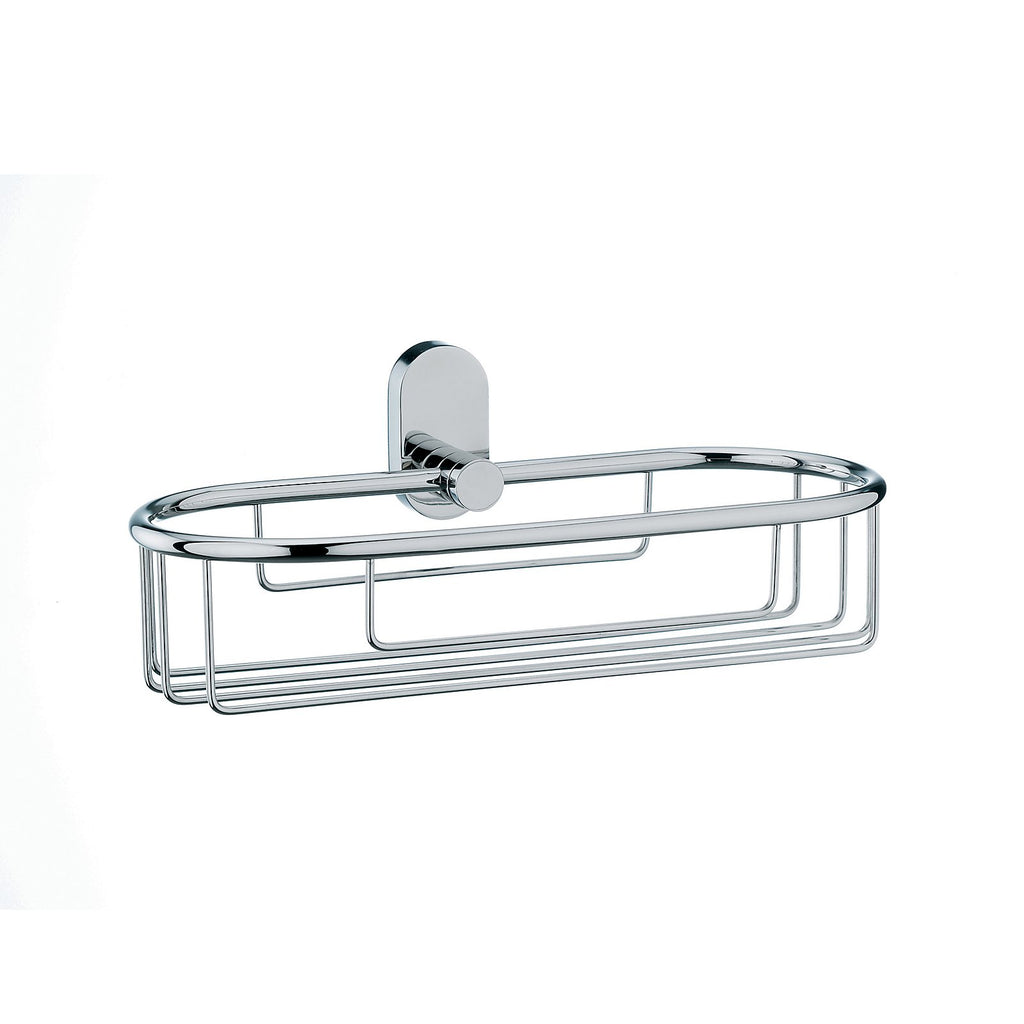 Lucido high-quality storage basket, 18/10 stainless steel with high-gloss finish; easy to mount (drill or glue) and remove; 26×10.5×9.5 cm; includes mounting kit in gift box.