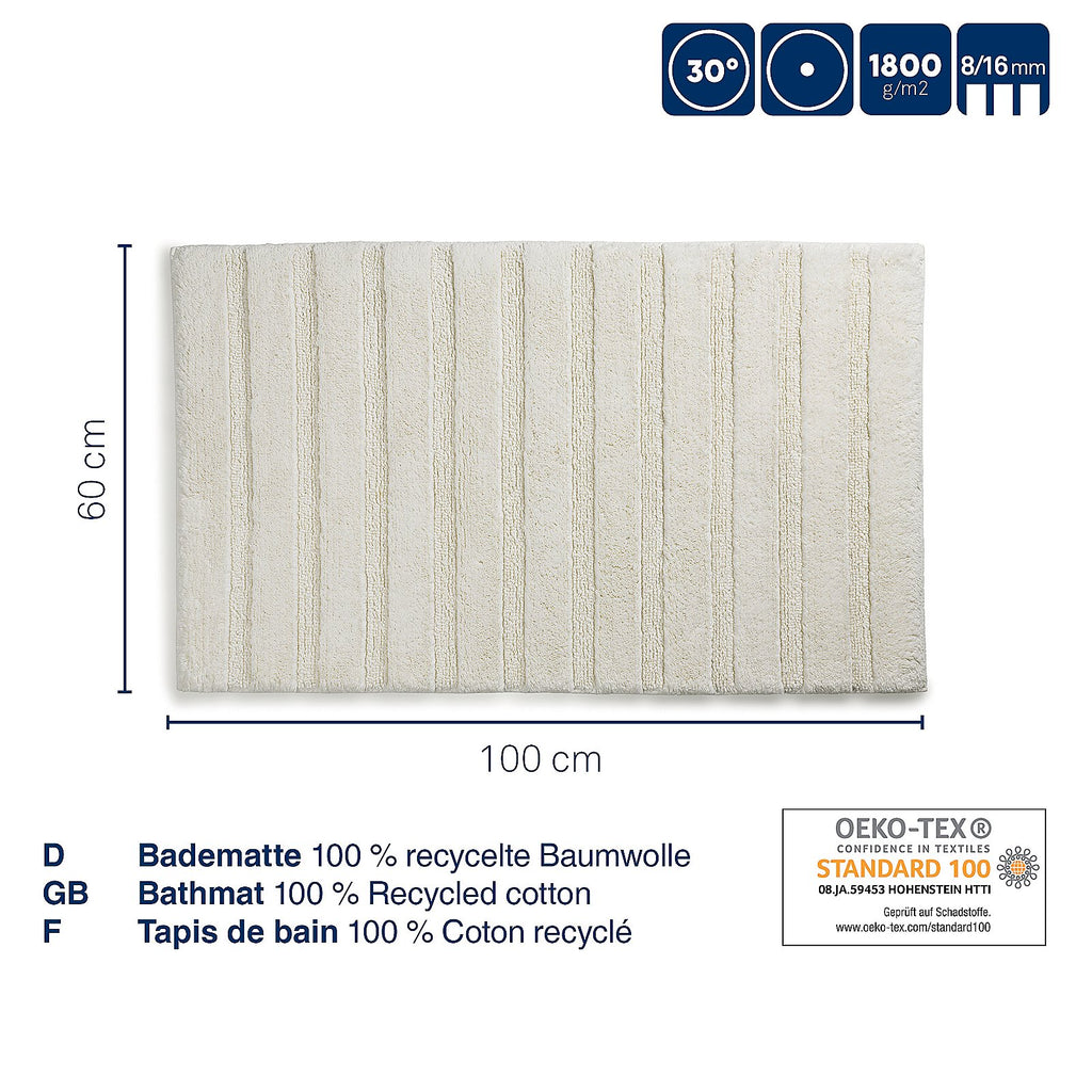 Megan bath mat, off-white 100×60 cm — 1800 g/m², 16 mm pile for luxuriously soft comfort; anti-slip backing. Durable, elegant choice for bathrooms.