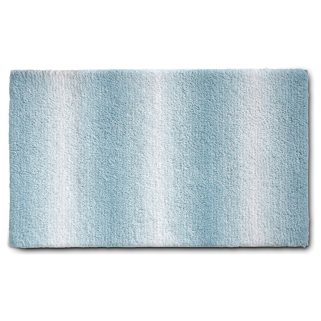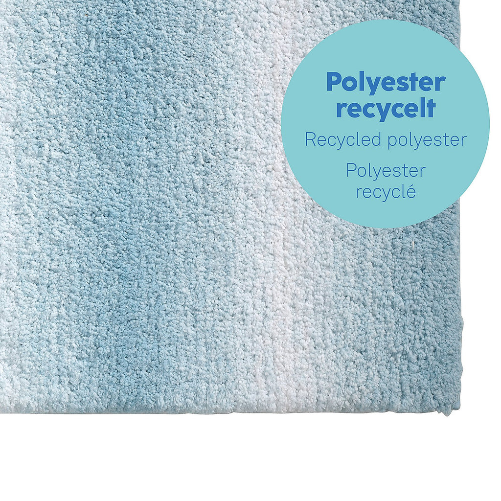 Kela Ombre bath mat, 100×60 cm — recycled polyester, high-pile, Freeze Blue ombre; non‑slip, underfloor‑heating compatible, machine washable at 30°C. Durable, elegant design from family-owned Kela.