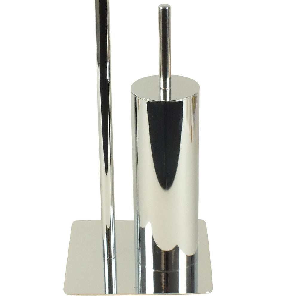 STYLE toilet set: elegant, compact chrome metal construction; includes toilet-paper holder, brush canister with removable plastic liner, premium stainless-steel-handled brush with replaceable head. Dimensions: 20×20×71 cm.