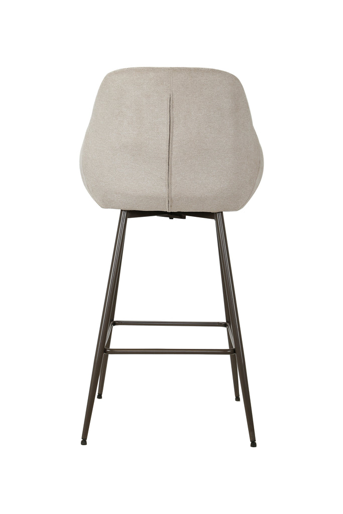 Off-white upholstered bar chair with armrests and powder-coated frame; modern, supportive design for kitchen islands or high tables — comfortable, neutral, knockdown assembly; seat 43×43cm, max load 120kg.