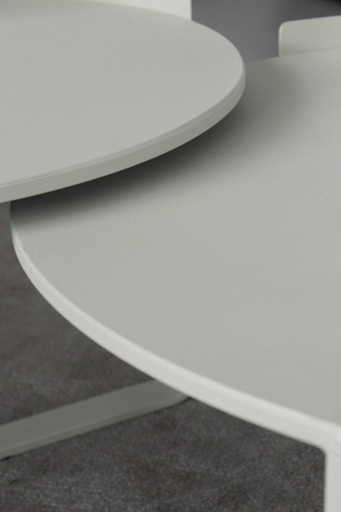 Compact round metal coffee table in refined taupe—minimalist modern design for small interiors. Durable, lightweight, stackable with floor protection; elegant surface for drinks, books, and décor. Indoor use only.