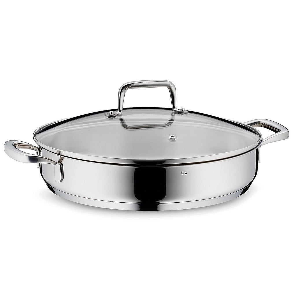 Flavoria serving pan with glass lid - made of stainless steel with a shiny look. This high-quality pan with practical handles is a must-have in every kitchen. Suitable for all stovetops!