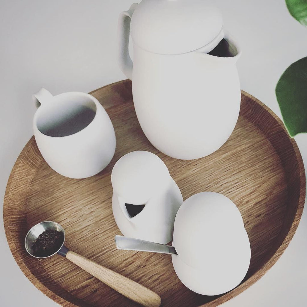 "The Nina Tea Set includes a 900ml teapot, milk jug, and sugar pot. Made of porcelain and stainless steel, Viva Scandinavia designs beautiful, functional products for everyday enjoyment with friends and family."