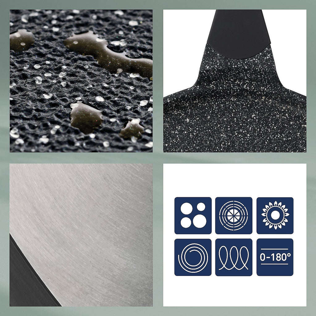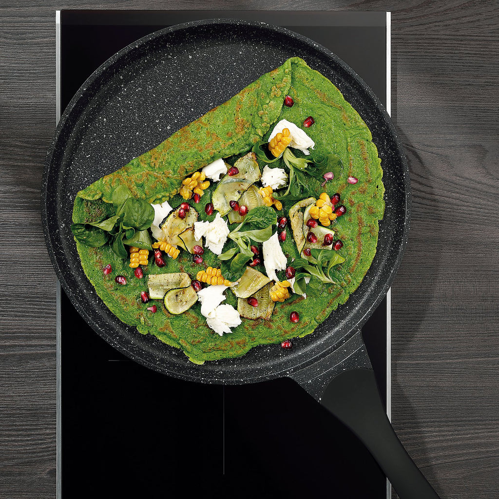 For thin crepes at home: the high-quality Stella Nova crepe pan with an energy-saving bottom. Made of aluminum with a durable non-stick coating. Suitable for various cooktops. Diameter 32 cm, 2.5 cm height.
