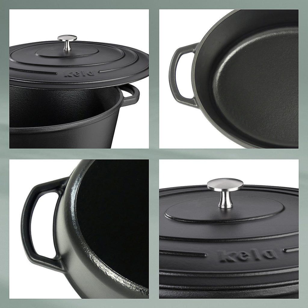 Brand new, now available in black: Stylish and durable cookware from the Kela Calido series. This 36cm long oval casserole with a 9.3L capacity is ideal for searing meat and slow-cooking dishes.