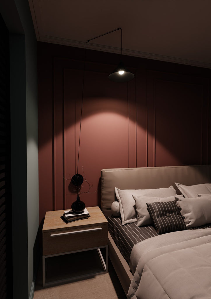 ABRAMO pendant lamp in black powder coated steel, part of the Scandinavian ABRAMO collection. Regulated height, E27 fitting, and a modern design adaptable to various interiors.