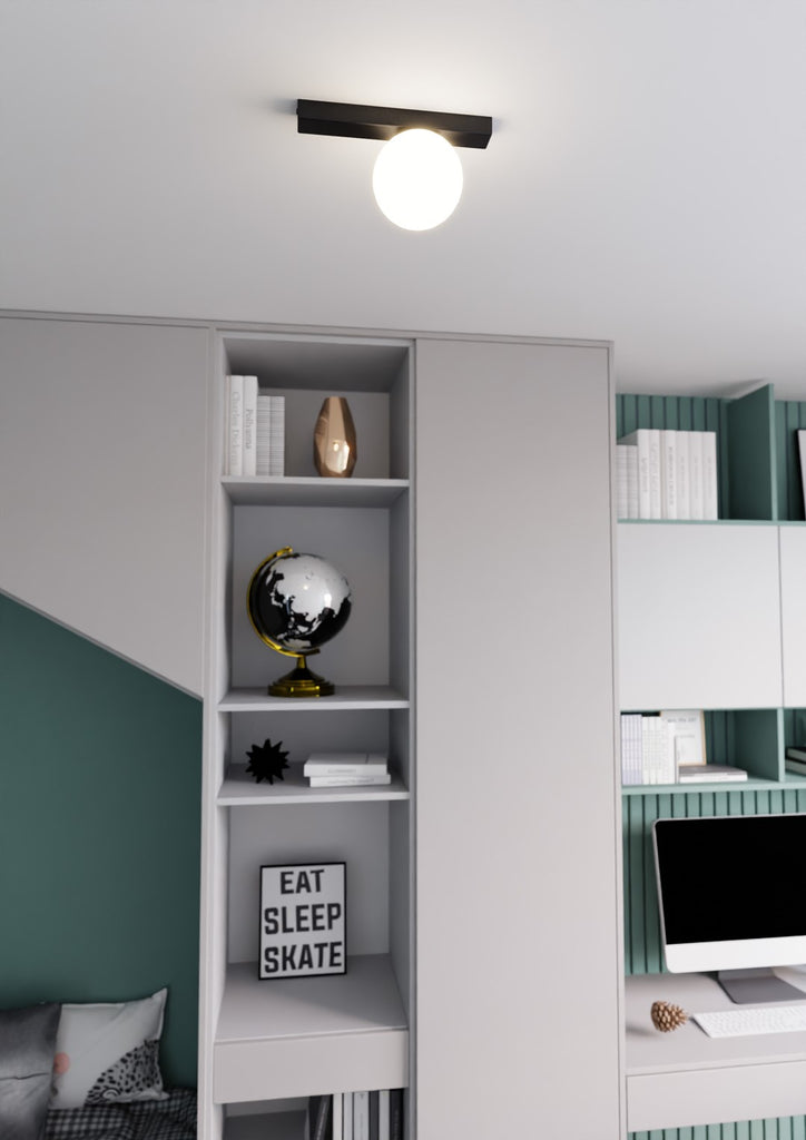 The FIT Ceiling Flush Mount is a sleek, minimalist lamp with an industrial flair, combining elegance and quality. Ideal for any decor. Features powder-coated steel and glass materials.