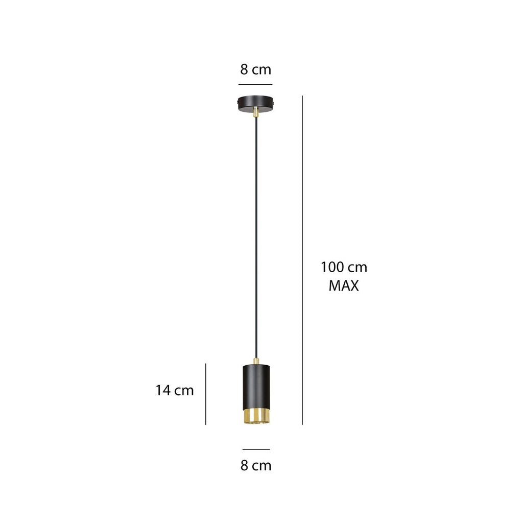 "FUMIKO designer pendant lamp features a sleek tubular design in metal. Available in white or black with gold/chrome accents, it complements all interiors. Ideal for living rooms, kitchens, or home offices."