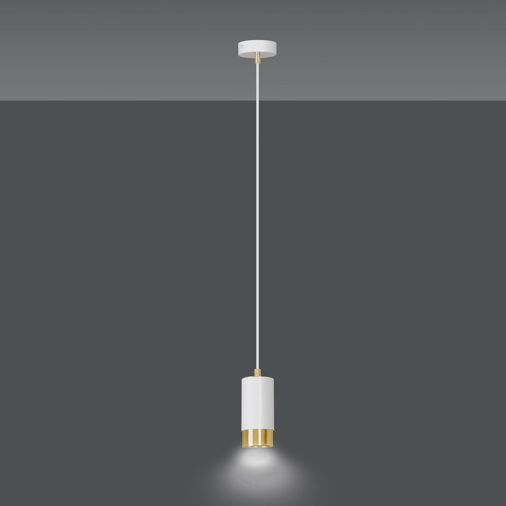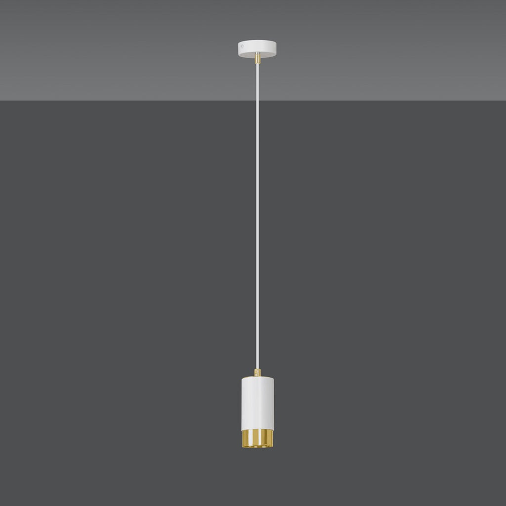 "FUMIKO is a sleek designer pendant lamp, available in white or black with gold or chrome details. Made of metal, it adds a modern touch to any room setting."