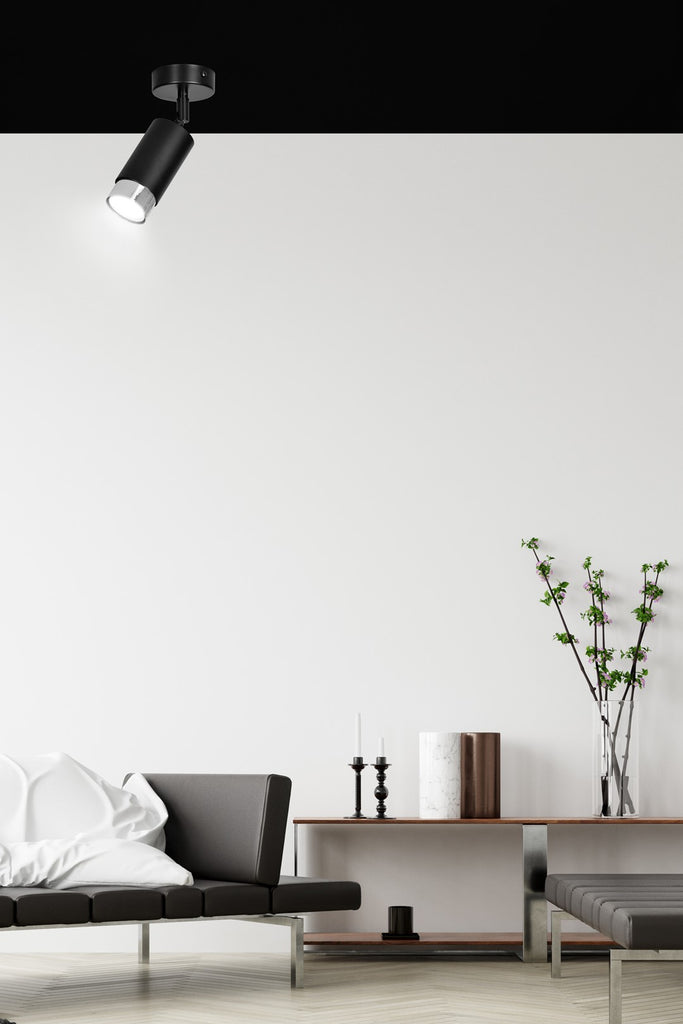 The HIRO spotlight series is a versatile choice for modern and classical interiors. Its adjustable angle provides focused light ideal for kitchens, hallways, or bedside use. Made of powder-coated steel.