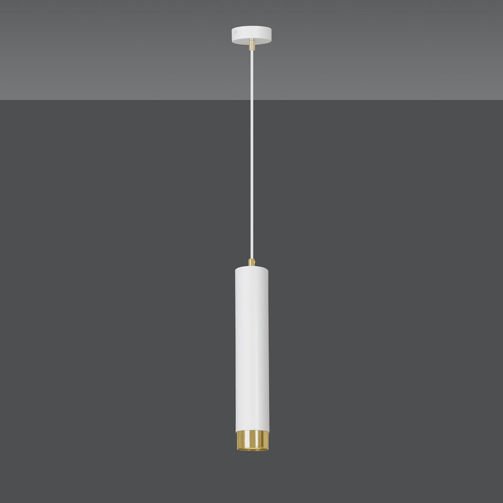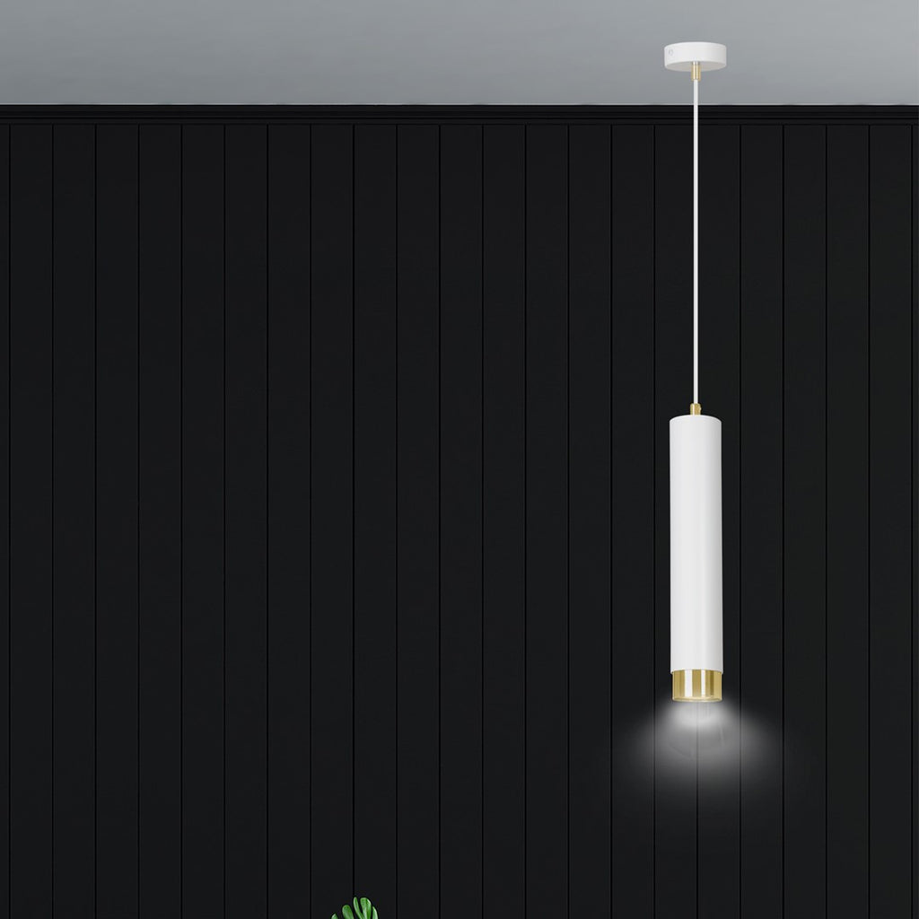 Enhance your space with KIBO designer pendant lamp. Modern tubular design in white or black with gold/chrome accents. Perfect for any room. Specs: Requires GU10 bulb, 230V, IP20 rating.