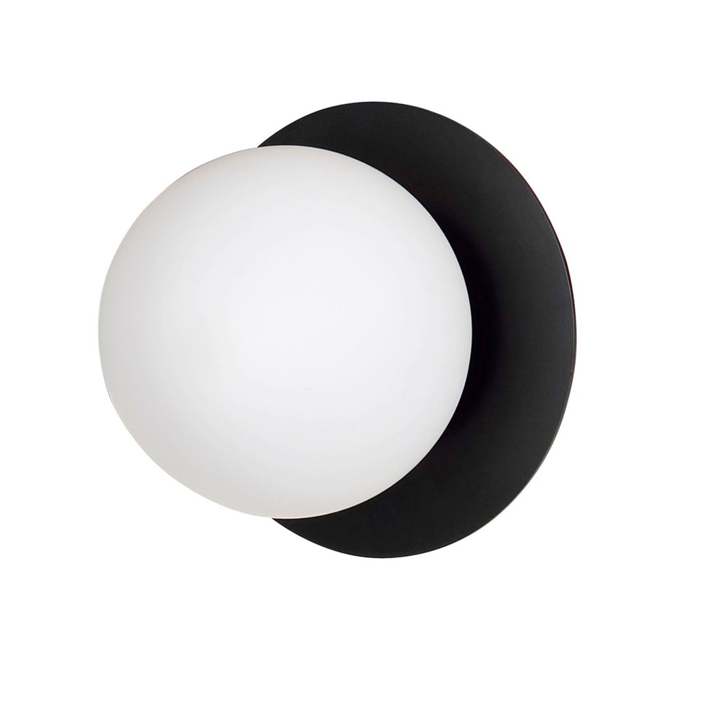 "MINERVA wall sconce: a timeless, elegant piece for any interior. Features a delicate milky shade for added charm. Offered in black or white. Specifications: steel, glass, modern style."