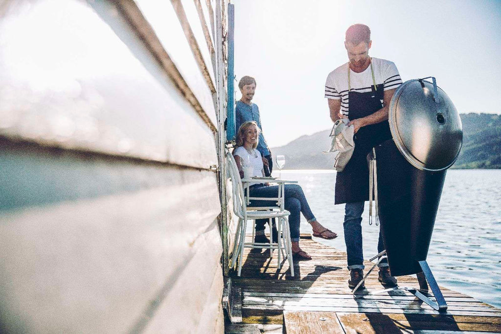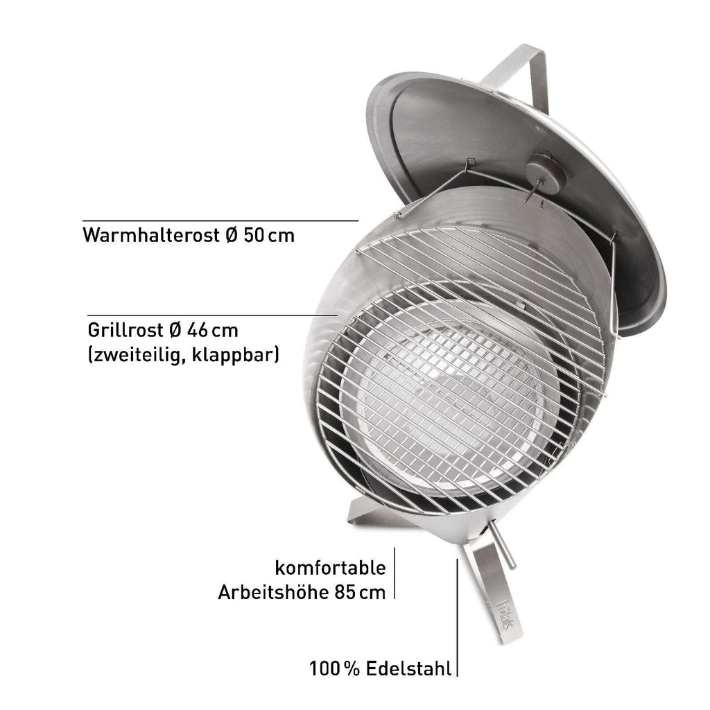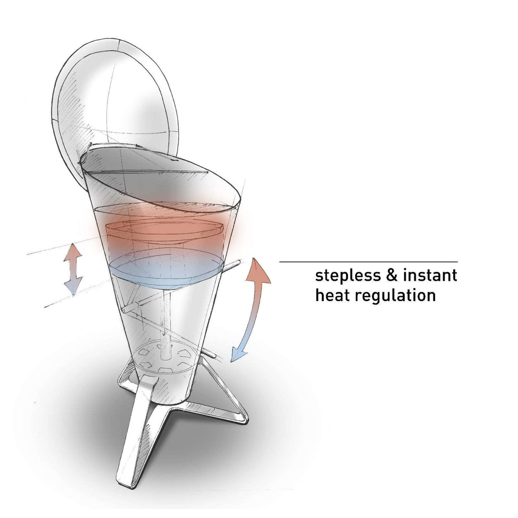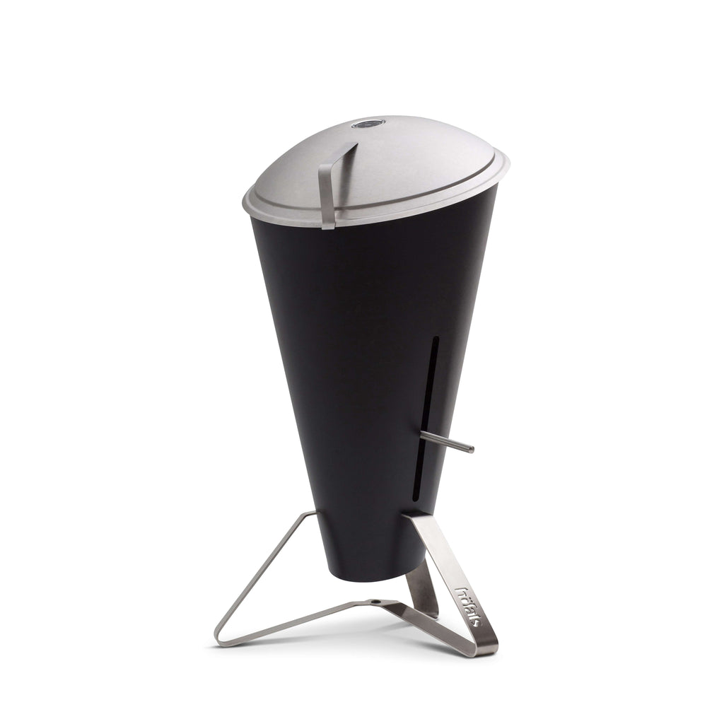 De Cone houtskoolbarbecue van H��fats biedt directe warmteregeling, een strak design in roestvrij staal en precisietemperaturen. Prestigieus Duits design met 40 prijzen.